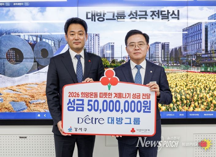 강서구 마곡지구에 둥지를 튼 대방그룹은 지난 2008년부터 꾸준히 이웃사랑을 실천하고 있다. 지난해에도 이웃돕기 성금 5천만 원을 기부했으며, 현재까지 누적된 성금은 총 5억 5천만 원에 달한다.