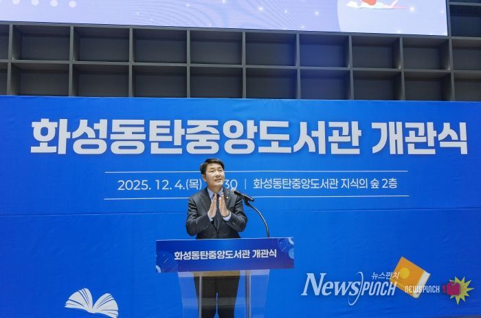 뉴스펀치 김길룡 기자 | 화성특례시의회(의장 배정수)는 4일, 화성동탄중앙도서관 2층 ‘지식의 숲’에서 개최된 화성동탄중앙도서관 개관행사에 참석해 시민들과 함께 축하했다.