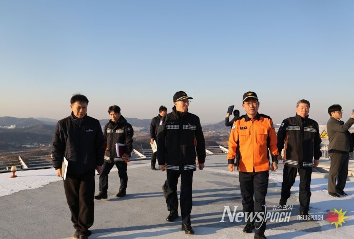 뉴스펀치 김길룡 기자 | 성호선 충남소방본부장은 지난 4일 오후, 천안시 서북구에 위치한 도내 최고층 건축물인 펜타포트를 방문해 안전관리 실태를 점검하고 현장 의견을 청취했다. 해당 지역을 관할하는 천안서북소방서 김종욱 서장도 참여해 점검 절차를 함께 진행했다.