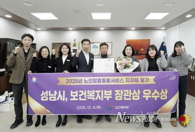 뉴스펀치 김길룡 기자 | 성남시는 보건복지부가 주관한 ‘노인 맞춤 돌봄 서비스 평가’에서 우수기관으로 선정돼 장관상을 받았다고 5일 밝혔다.