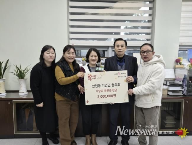 뉴스펀치 김길룡 기자 | 시흥시 안현동 기업인협의회가 지난 12월 3일 은행동 취약계층을 위해 후원금 200만 원을 기부했다.