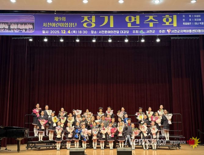 뉴스펀치 김길룡 기자 | 서천군은 지난 4일 서천문예의전당 대강당에서‘2025년 제9회 서천어린이합창단 정기연주회’를 성황리에 개최했다.