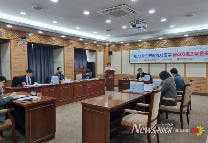 뉴스펀치 김길룡 기자 | 인천시 중구는 지난 3일 중구청 상황실에서 ‘제73차 중구 공직자윤리위원회’를 개최했다.