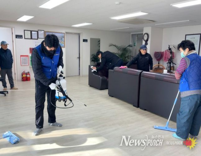 건물 위생 관리 및 종합 사업시설 관리 서비스를 제공하는 전문업체인 사회적기업 ㈜해피C·T는 이날 경로당 바닥·창문·주방 등 공동 사용 공간을 중심으로 세척·소독 작업을 진행했다.