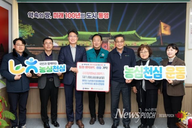 뉴스펀치 김길룡 기자 | 통영시는 통영시 농축협조합장협의회와 농가주부모임 통영시연합회(회장 황송희)에서 지난 3일 김장행사 때 정성껏 담근 김장김치(5kg) 200박스(700만원 상당)를 통영시에 기탁했다고 밝혔다.