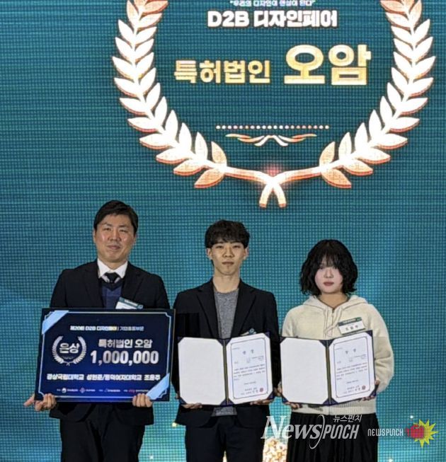 뉴스펀치 김길룡 기자 | 경상국립대학교 지식재산융합학과 대학원 성현준 팀이 12월 3일 서울 삼성동 코엑스에서 개최된 ‘2025 D2B 디자인페어’에서 은상을 수상했다.