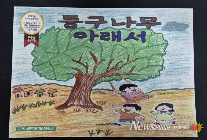 해당 작품은 마을 중심에 서 있는 나무를 매개로 세대를 잇는 기억과 정서를 풀어낸 것으로, 학습자들이 직접 구상과 글쓰기, 그림 콘셉트까지 참여했다.
