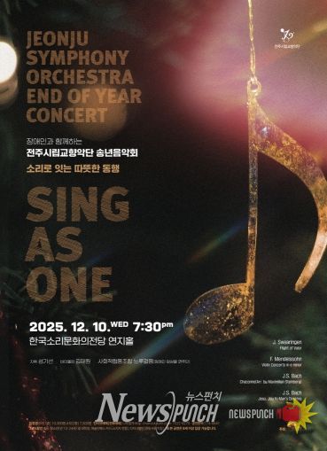 노은영 전주시 문화체육관광국장은 “이번 공연은 연말 감성을 담은 음악 속에서 사회적 포용의 가치를 공유하는 뜻깊은 무대가 될 것”이라며 “시민들이 함께 참여해 예술이 전하는 따뜻한 메시지를 나누길 바란다”고 말했다.
