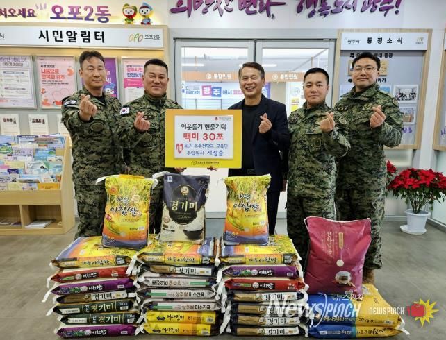 뉴스펀치 김길룡 기자 | 광주시 오포2동에 위치한 육군 특수전학교 교육단의 서정출 주임원사는 지난 4일 취임을 축하하며 전달받은 백미 30포(10㎏)를 오포2동에 기탁했다.