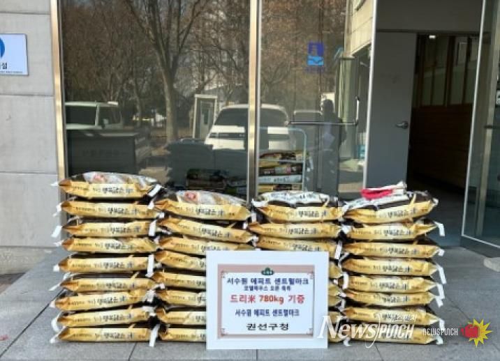 뉴스펀치 김길룡 기자 | 수원시 권선구는 지난 4일 당수동 서수원 에피트 센트럴마크 모델하우스로부터 어려운 이웃을 돕기 위한 백미 780kg(10kg 78포, 약 227만 원 상당)을 기탁받았다고 밝혔다.