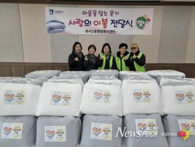 뉴스펀치 김길룡 기자 | 수원시 팔달구 화서2동은 본격적인 한파를 앞둔 지난 4일, 저소득 취약계층의 안전하고 따뜻한 겨울나기를 지원하기 위해 ‘2025 사랑의 이불 전달식’을 개최했다.