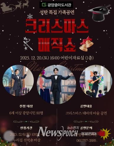 김현숙 도서관과장은 “아이들이 이번 공연을 통해 새로운 상상과 창의의 세계를 경험하고 마술의 원리를 탐구하는 재미를 느끼길 기대한다”며 “도서관을 찾은 가족 모두가 함께 웃고 공감하며 따뜻한 성탄의 추억을 만들어 가길 바란다”고 말했다.