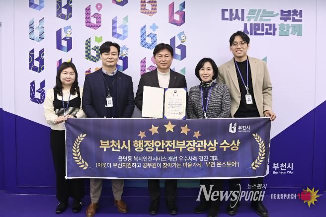 뉴스펀치 김길룡 기자 | 부천시는 행정안전부가 주관한 ‘2025년 읍면동 복지‧안전서비스 개선 우수사례 경진대회’에서 복지 분야 기관표창상인 장관상을 받았다고 5일 밝혔다.