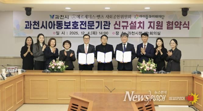 뉴스펀치 김길룡 기자 | 과천시는 지난 4일 시청 회의실에서 메르세데스-벤츠 사회공헌위원회 및 사회복지법인 아이들과미래재단과 ‘과천시아동보호전문기관 신규 설치’를 위한 협약식을 개최했다고 밝혔다.