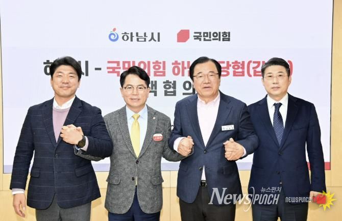 뉴스펀치 김길룡 기자 | 하남시는 4일 시청 상황실에서 국민의힘 하남시 갑·을 당협위원장과 정책협의회를 개최하고, 주요 시정 현안에 대한 협력을 강화하기로 했다고 밝혔다.