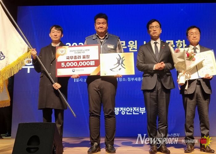 뉴스펀치 김길룡 기자 | 안성시와 전국공무원노동조합 안성시지부는 지난 3일 정부세종청사에서 열린 ‘2025년 공무원 노사문화 우수행정기관 인증제’ 심사에서 우수행정기관으로 선정돼 국무총리 표창을 수상했다고 밝혔다.