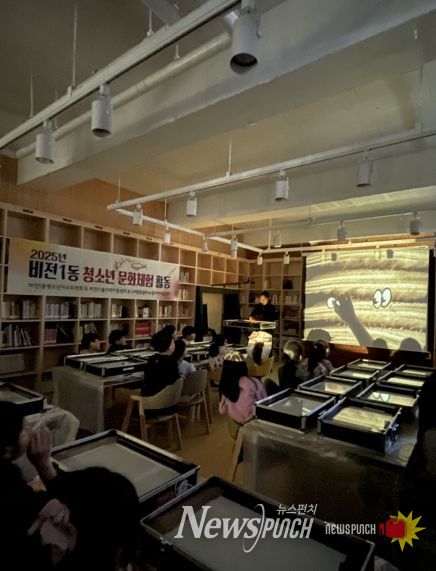 뉴스펀치 김길룡 기자 | 평택시 비전1동 청소년지도위원회는 지난 2일부터 3일까지 이틀간 관내 지역아동센터 2곳에서 ‘2025 청소년 문화 체험 샌드아트 공연 및 체험 행사’를 성황리에 개최했다.