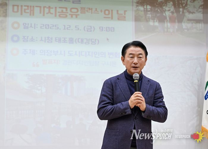 뉴스펀치 김길룡 기자 | 의정부시는 12월 5일 시청 태조홀에서 시민과 직원 150여 명이 참석한 가운데 ‘2025년 12월 미래가치 공유플러스+의 날’을 열고 ‘디자인 도시’에 대한 비전을 공유했다.