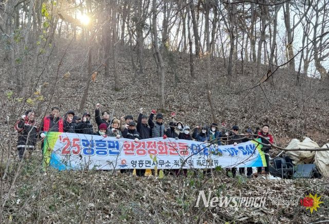 이번 정화활동은 영하 5도의 추운날씨에도 불구하고 외1리 마을주민 등 40여명이 참여하여 ‘깨끗한 영흥 만들기’구호 아래 청소가 취약한 산림속 쓰레기들을 수거하고 마을 환경정비에 구슬땀을 흘렸다.