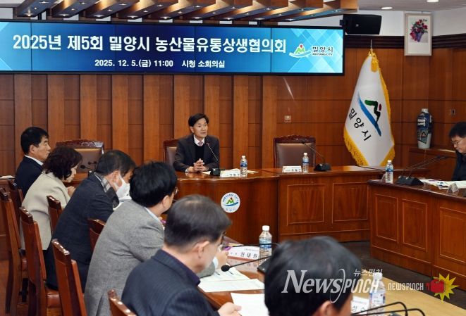 뉴스펀치 김길룡 기자 | 경남 밀양시는 5일 밀양시청 소회의실에서 ‘2025년 제5회 밀양시 농산물유통상생협의회’를 개최했다.