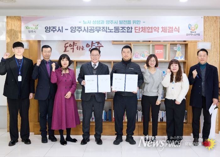 뉴스펀치 김길룡 기자 | 양주시와 양주시공무직노동조합이 공무직 근로자의 근무여건 개선과 건전한 노사 관계 확립을 위해 새로운 단체협약을 체결했다.