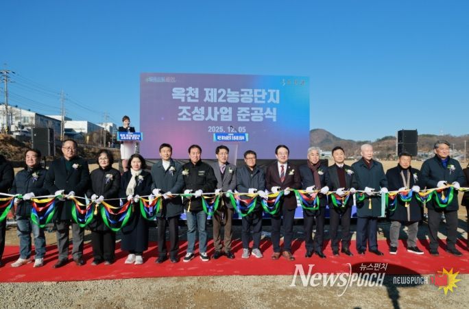뉴스펀치 김길룡 기자 | 옥천군이 5일 산업입지 수요 대응 및 지역경제 활성화를 위한 ‘옥천 제2농공단지 조성사업’ 준공식을 옥천읍 동안리 농공단지 일원에서 개최했다. 이날 준공식에는 경과보고, 유공자표창, 기념사, 축사, 테이프 커팅 순으로 진행됐으며, 황규철 옥천군수 등 내·외빈을 포함하여 40여 명이 참석했다.