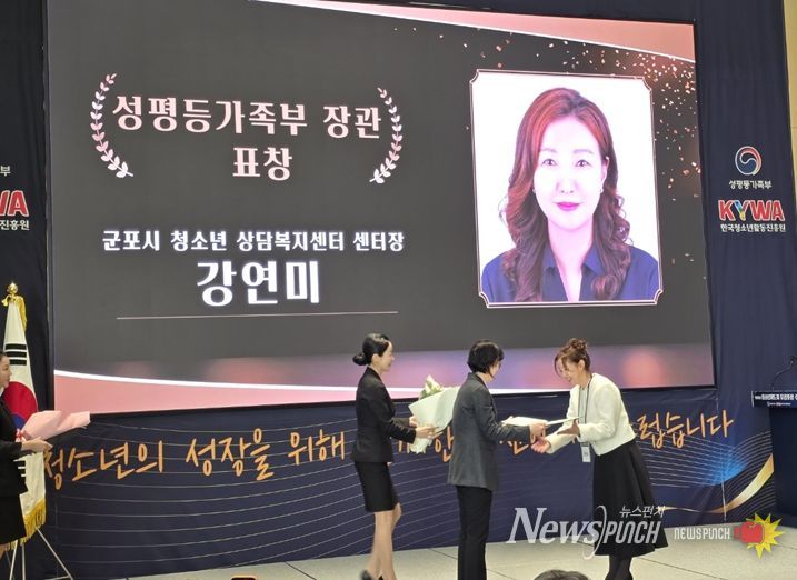 뉴스펀치 김길룡 기자 | 군포시청소년재단 군포시청소년상담복지센터 강연미 센터장이 지난 3일 개최된 ‘2025년 청소년지도자 유공 포상 수여식’에서 성평등가족부 장관 표창을 수상했다.