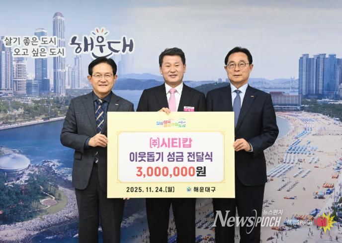 뉴스펀치 김길룡 기자 | ㈜시티캅은 24일 해운대구에 저소득 가정을 지원하기 위한 성금 300만 원을 기탁했다.