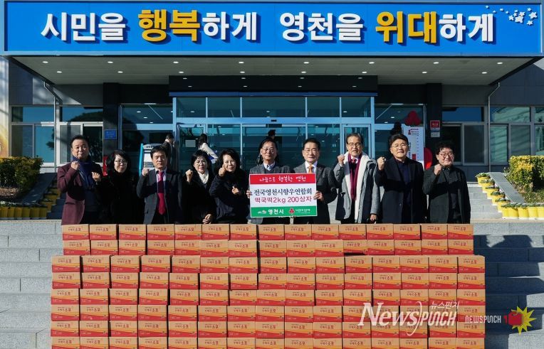 시 관계자는 “고향을 잊지 않고 따뜻한 마음을 전해주신 전국영천시향우연합회에 깊이 감사드린다”며, “기탁해주신 물품은 꼭 필요한 곳에 정성껏 전달해 훈훈한 연말 분위기가 지역사회에 널리 퍼질 수 있도록 하겠다”고 전했다.