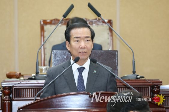 뉴스펀치 김길룡 기자 | 구인모 거창군수는 지난 5일 제290회 거창군의회 제2차 정례회에 8,313억원 규모의 내년도 예산안을 의회에 제출하면서 시정연설로 2026년 군정 운영 방향을 밝혔다.