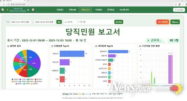 뉴스펀치 김길룡 기자 | 김포시가 야간·공휴일 민원 대응 업무에 웹 기반 자동화 시스템을 도입하며 AI 기반 행정혁신에 속도를 내고 있다. 김포시는 당직민원처리시스템 ‘Gimpo 24 : From Sun To Moon’을 외주 없이 전면 2개월간 자체 개발하여 지난 1일 부터 정식 운영에 들어갔다고 밝혔다.