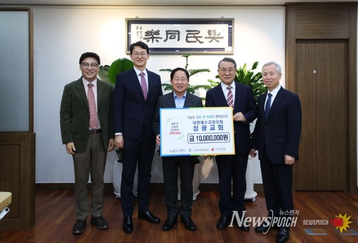 뉴스펀치 김길룡 기자 | 남양주시는 12월 5일 구리시에 위치한 성광교회가 지역 내 취약계층 지원을 위해 후원금 1천만 원을 전달했다고 밝혔다.