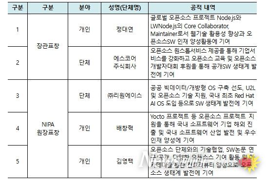아울러, 공개 소프트웨어(오픈소스) 생태계 조성 및 확산에 기여한 공로를 치하하기 위해 ‘2025년 공개 소프트웨어(SW) 유공자 표창’과 함께 ‘공개 소프트웨어(오픈소스) 개발자대회’, ‘공개 소프트웨어 공헌 교실(오픈소스 컨트리뷰션 아카데미)’ 참여 우수 팀들의 시상식도 진행됐다.