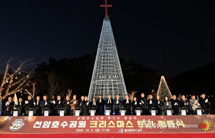 뉴스펀치 김길룡 기자 | 울산 남구는 5일 선암호수공원 녹색의 숲 잔디마당에서 ‘2025 선암호수공원 크리스마스 트리 점등식’을 열고 화려하게 불을 밝혔다.
