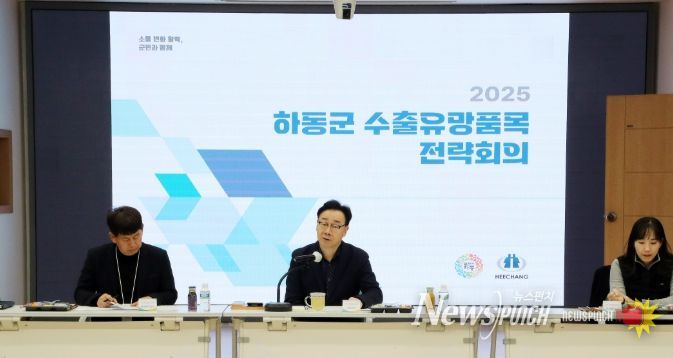 뉴스펀치 김길룡 기자 | 하동군은 지난 5일 군청 소회의실에서 2026년에 농식품 수출 확대를 위한 ‘수출유망품목 전략회의’를 개최했다고 밝혔다.