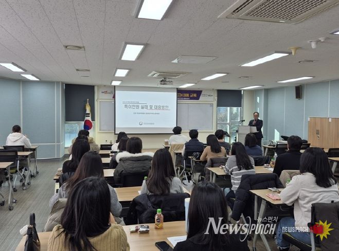 이번 교육은 국민권익위원회 ‘찾아가는 특이민원 시민상담관’을 강사로 초빙해 특이민원의 실태와 종합대책, 유형별 대응 요령, 법적 대응체계 등 실무 중심 내용으로 진행됐다. 특히 실제 사례 기반의 질의응답과 법률적 대응 기준 안내가 포함돼 직원들의 높은 호응을 얻었다.