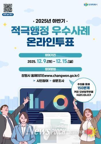 뉴스펀치 김길룡 기자 | 창원특례시는 2025년 하반기 적극행정 우수사례 선발을 위해 12월 9일부터 15일까지 시 홈페이지에서 온라인투표를 실시한다고 밝혔다.
