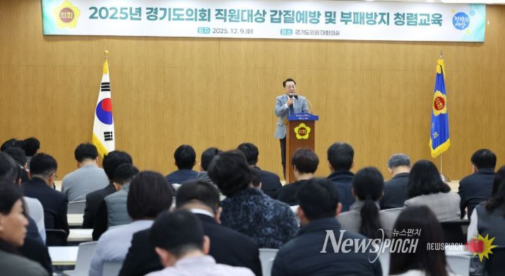 뉴스펀치 김길룡 기자 | 경기도의회는 9일 오전 의회 대회의실에서 전 직원을 대상으로 ‘갑질예방 및 부패방지 청렴교육’을 실시했다.