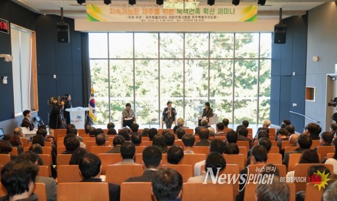 제주도는 9일 제주문학관에서 녹색건축의 확산 전략과 지방정부의 정책 역할을 논의하는 ‘지속가능한 제주를 위한 녹색건축 확산 세미나’를 개최했다.