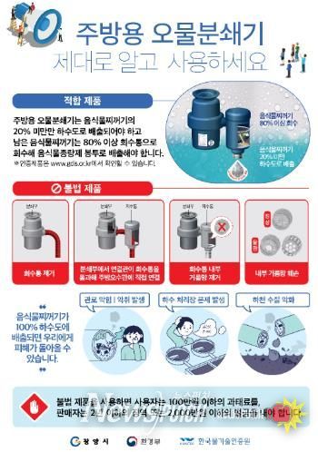 시 관계자는 “인증받지 않은 주방용 오물분쇄기는 하수도 시스템에 심각한 부담을 주고 환경오염을 유발할 수 있다”며 “제품 구입 시 KC 안전인증 표시를 반드시 확인하고, 합법 제품이라 하더라도 일반가정에서만 사용 가능하다는 점을 유의해 달라”고 당부했다.