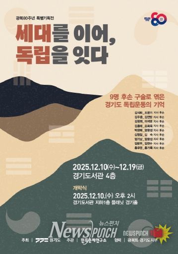 뉴스펀치 김길룡 기자 | 경기도가 광복 80주년을 맞아 10일부터 19일까지 경기도서관 4층에서 독립운동가와 그 후손들의 삶을 통해 독립정신을 되새기는 사료전시회 ‘세대를 이어, 독립을 잇다’를 연다.