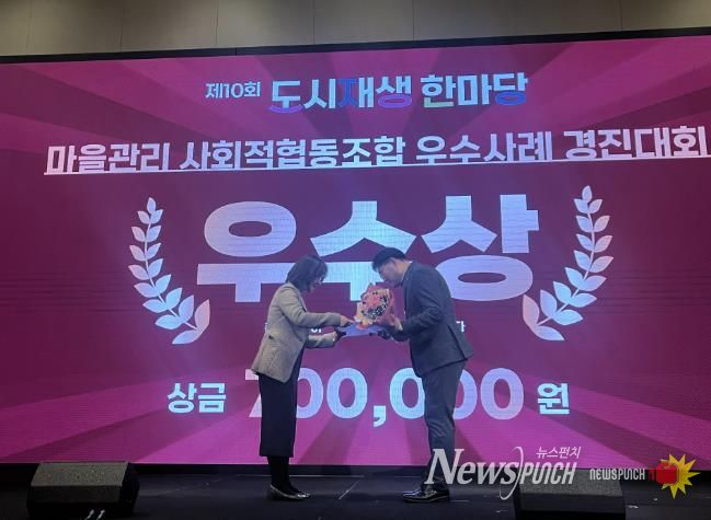 뉴스펀치 김길룡 기자 | 당진시는 합덕 마을관리 사회적협동조합이 지난 10일 국토교통부가 주최한 ‘2025년 도시재생 한마당’에서 마을관리 사회적협동조합 경진대회 분야 우수사례로 선정돼 우수상을 수상했다고 11일 밝혔다.