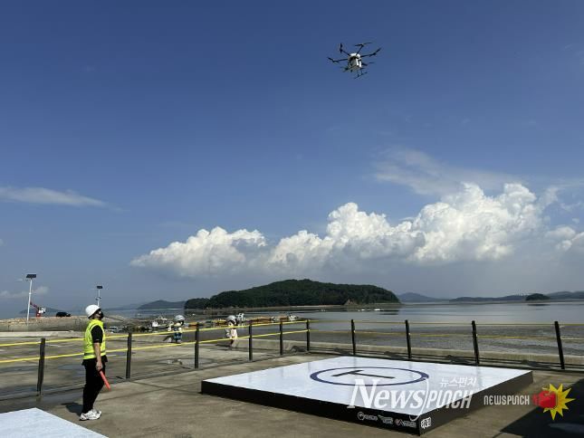 뉴스펀치 김길룡 기자 | 충남 서산시의 가로림만 맞춤형 드론 배송 상용화 서비스가 섬 지역 시민과 관광객의 편의를 향상했다.