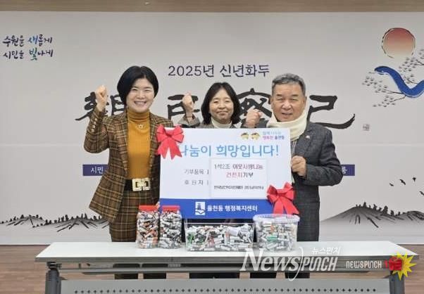 뉴스펀치 김길룡 기자 | 수원시 장안구 율천동은 지난 10일 한국보건복지인재원 경인교육센터가 율천동 지역사회보장협의체의 환경과 나눔 특화사업인 1석2조 이웃사랑 나눔사업에 함께 참여했다고 전했다.