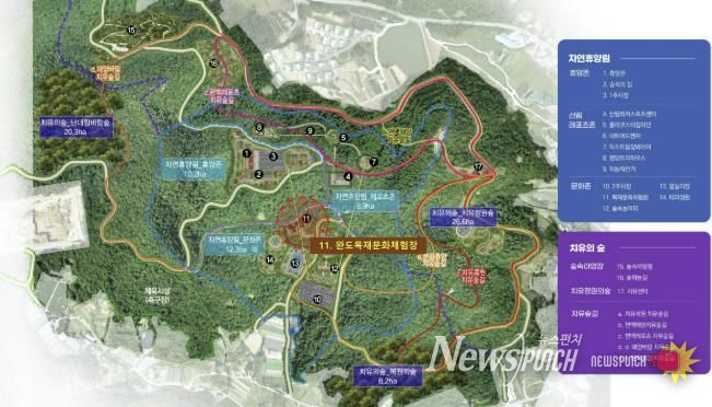 뉴스펀치 김길룡 기자 | 완도군은 완도읍 가용리 편백숲 일원 산람치유단지 내 ‘목재 문화 체험장’을 조성한다.