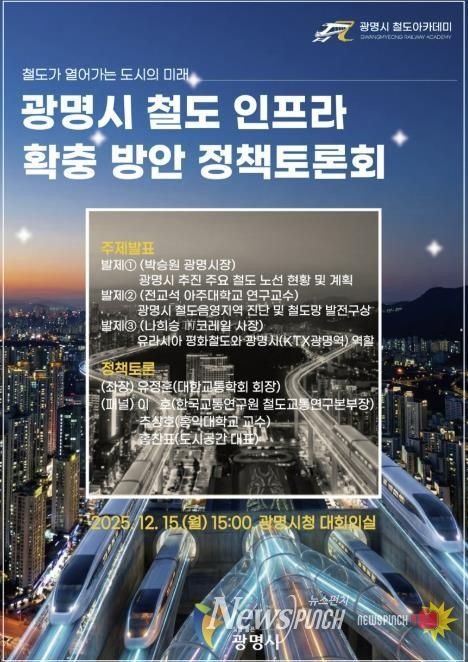시는 오는 15일 오후 3시 시청 대회의실에서 ‘광명시 철도 인프라 확충방안 정책 토론회’를 개최한다.