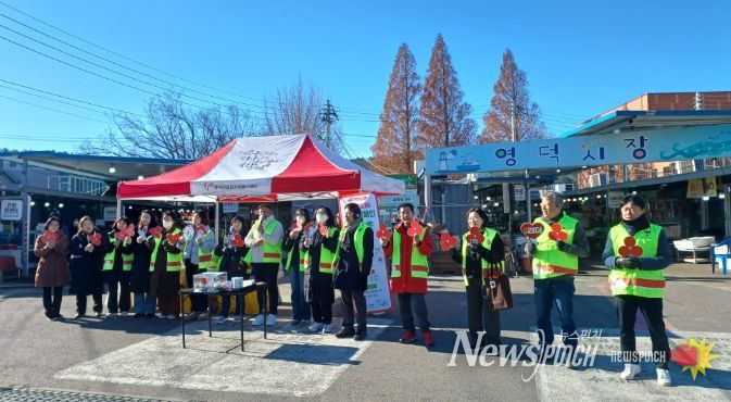 뉴스펀치 김길룡 기자 | 영덕군과 사랑의열매 나눔봉사단이 연말 나눔 문화 확산을 위해 지난 8일부터 10일까지 3일간 영덕, 강구, 영해시장을 돌며 ‘희망2026 나눔 캠페인’ 합동 모금 활동을 펼쳤다.