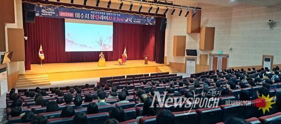 뉴스펀치 김길룡 기자 | 여수시는 지난 10일 여수문화홀에서 직원을 대상으로 국민권익위원회 청렴연수원 주관 ‘청렴라이브’ 청렴교육을 실시했다고 밝혔다.