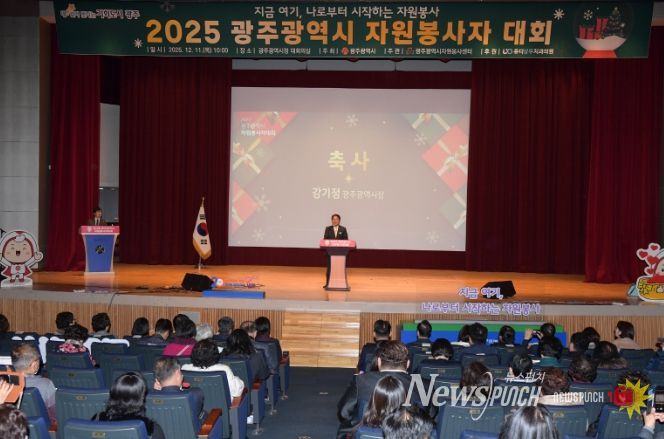 뉴스펀치 김길룡 기자 | 광주광역시는 ‘세계 자원봉사자의 날’(12월5일)을 기념해 11일 시청 대회의실에서 지역사회 곳곳에서 헌신해 온 자원봉사자들을 격려하는 ‘2025 광주광역시 자원봉사자대회’를 개최했다.