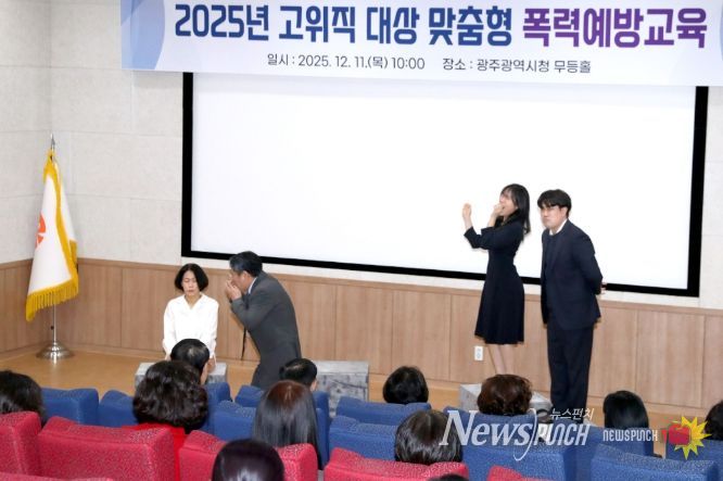 뉴스펀치 김길룡 기자 | 광주광역시는 11일 시청 2층 무등홀에서 4급 이상 간부공직자를 대상으로 ‘맞춤형 폭력예방 교육’을 실시했다.